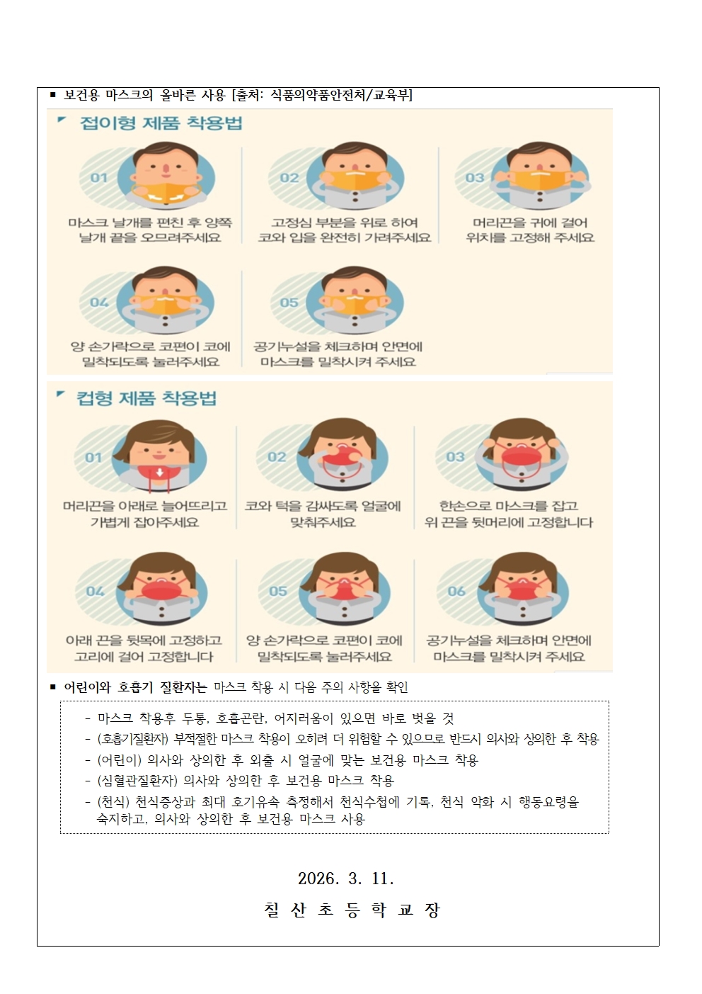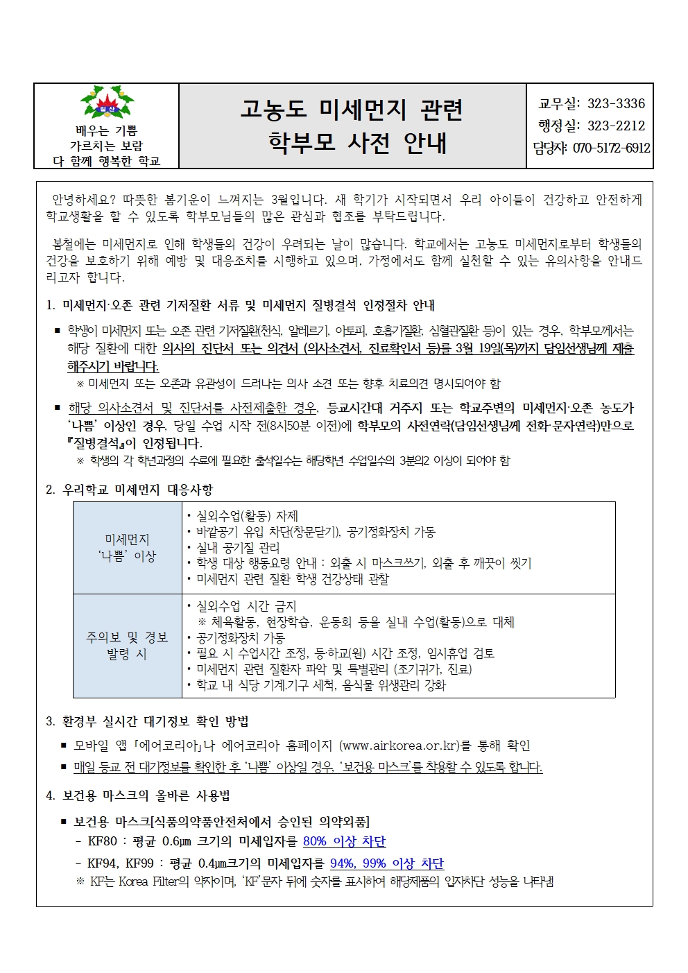 고노동 미세먼지 관련 학부모 사전 안내